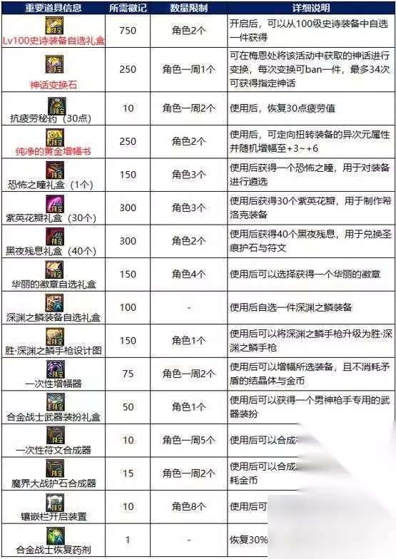 NPC商店兑换奖励: