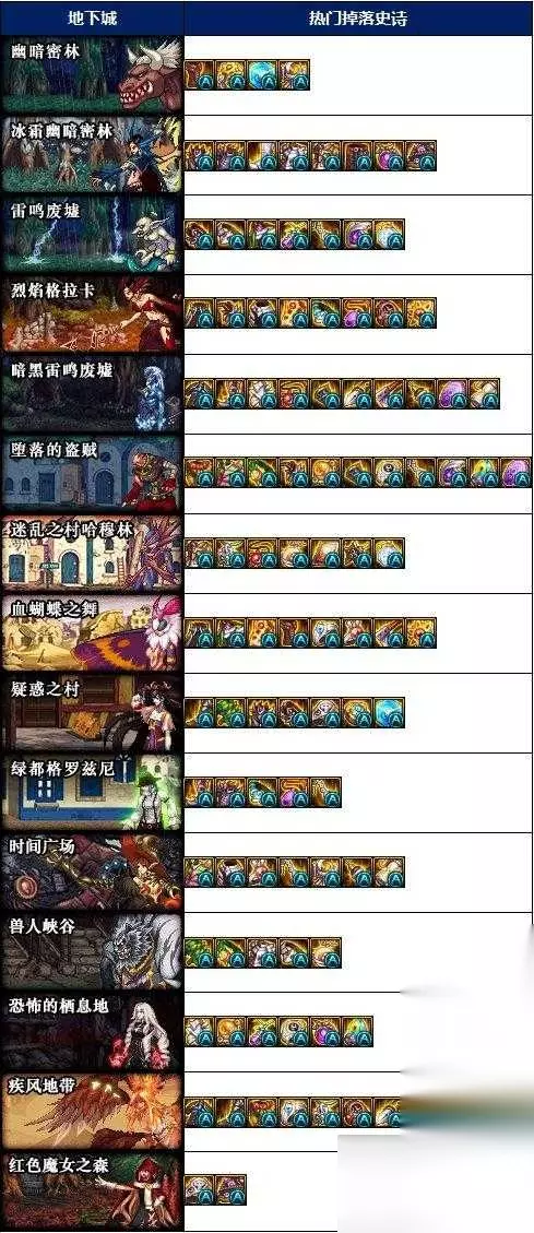 其中不同的地下城掉落的史诗装备均不同,不同地下城掉落的热门装备如下: