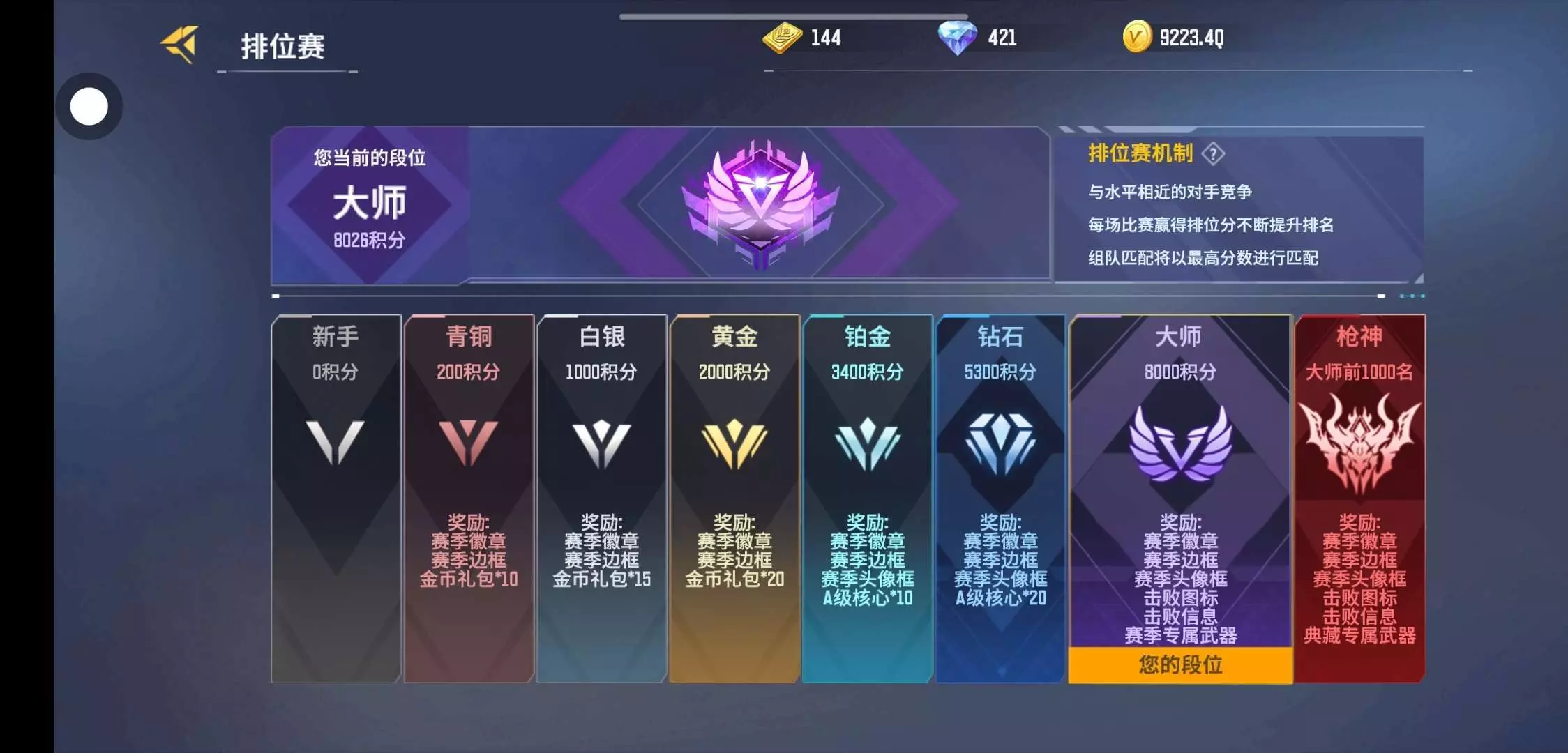 难啊,新赛季22天了,终于上大师了