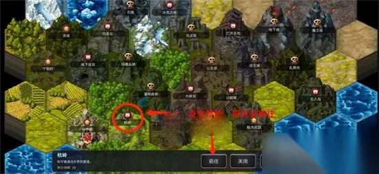 5.这里需要注意一下,所有地图切换都是在羽毛按钮这里进行的,并没有在地图上有什么传送点,在探索地图的时候不要被绕晕了。 点击前往之后就会选择战斗方式以及额外效果,这里大家选择最适合自己的就好。 战斗偶尔会掉落箱子,只要靠近箱子并点击右下角箱子图标就可以拾取。(如果有血量告急或者是打不过的情况下,点击左侧的羽毛按钮可以直接回家,这样就可以避免浪费一次复活次数)