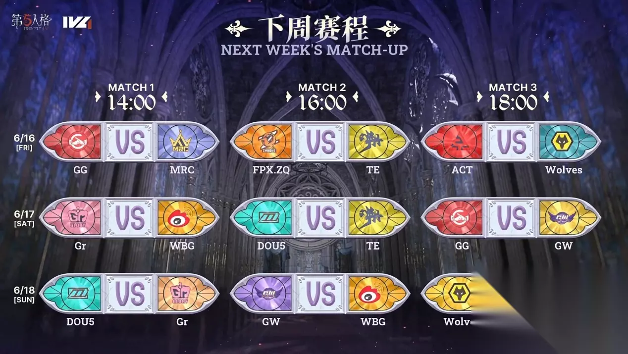 图为守夜人恐惧震慑昆虫学者 【赛况总结】 此次夏季赛比赛bp规则有大幅改动,仅仅三天的比赛已经可以看到比赛版本正逐渐向监管者方倾斜。新监管者守夜人表现十分亮眼,而半全局禁用模式使得求生者方选择大幅度受限。对求生者选手的实力的要求提高很多,要求所有选手都有扎实的基本功,追击流监管者重回巅峰,求生者方容错率已不像之前那么高,反而是监管者可以不断抓机会争三争四。 此外,这次转会期可谓IVL成立以来变动最大的一次,几乎所有战队迎来大换血,有很多老面孔退出舞台,新人的表现却出人意料十分不俗,导致各战队之间的实力克制关系彻底洗牌。从本周积分榜便可以窥见一斑,成都GG新人选手发挥出色,完美融入队伍,配合冠军教练的bp,求生者方争分击败劲敌DOU5,监管者GG_xawm紧跟版本,守夜人和邦邦强势四抓稳定保平,带领队伍连下两城;GW则是以黑马的姿态与成都GG并列榜首,求生者方新增GW_Tea指挥,配合拉满,带领四出;TE则是Reborn又一次重生,击败实力不俗的MRC战队,给观众带来惊喜;曾经的强势战队成都Wolves、FPX.ZQ和WBG反而还没有迎来首胜。 【本周预告】 转会期带来的巨大选手变动再加上赛事规则的变更对求生者的实力要求提高,监管者也需要适应版本回到追击流的时代。比赛新人的加入、老面孔的新组合和不同教练的bp博弈对垒将会碰撞出怎样的火花?让我们一起锁定下周末第五人格赛事官方直播间一探究竟吧!