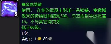 本文介绍了魔兽世界中永久附魔消耗品精金武器链的作用,精金武器链可附加在60级及以上的近战武器上,能缩短50%缴械效果持续时间,还可提高15点招架等级,且不与其他同类效果叠加。