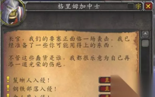 魔兽世界要塞前置任务在哪 任务介绍: 1、要塞任务需要要塞升到3级,之后找到要塞大厅门口的军需官。