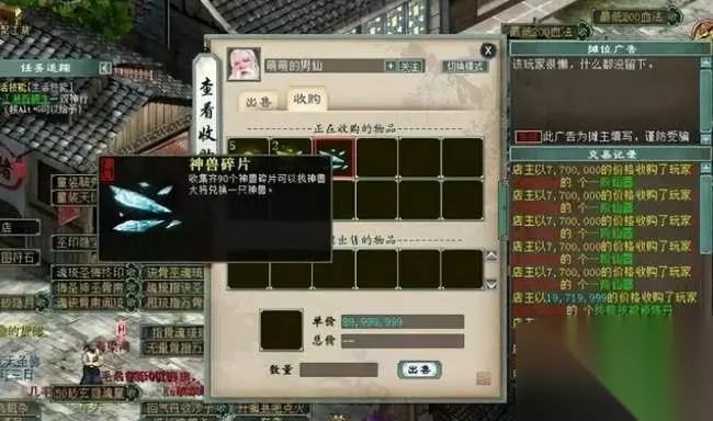 其实大话2有很多几率挑战,咱们今天重点讲讲与召唤兽相关的几率挑战。还有就是神兽碎片合成神兽。这个其实就是豪赌了。一个神兽碎片换成人民币大概在300元左右,90个那就是两万七左右。如果出了老版神兽,那就是血亏。如果出六艺神兽那应该能赚不少。不过这个概率你应该知道有多坑吧,毕竟是王姨。