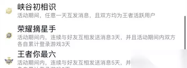 王者荣耀手q互动标识荣耀摘星手获取方法 1:其实这个不在游戏中获取,也不是使用QQ游戏中心启动王者荣耀获取的途径比较麻烦; 2:我们打开QQ然后进入设置,找到隐私,找到好友互动标识,拉到最下面就能看到荣耀摘星手了; 3:在游戏中我们点击去完成就跳转到QQ上,在QQ上的介绍是和好友连续聊三天就可以获得了; 4:所以这个获取的方法就是在游戏中加别人的好友,然后在QQ上和人家连续发三天的消息就可以获得了。