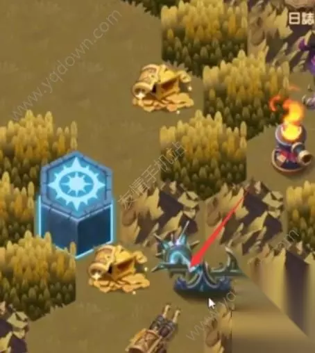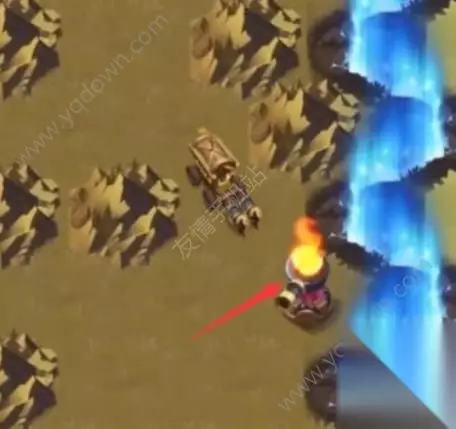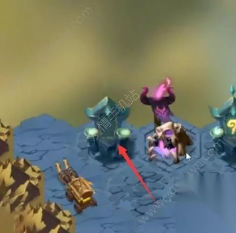 然后点击中间的驿站,将下方的通道打开,玩家就可以点击下方的火炮将boss小怪击败,获得左侧的第一个大宝箱。