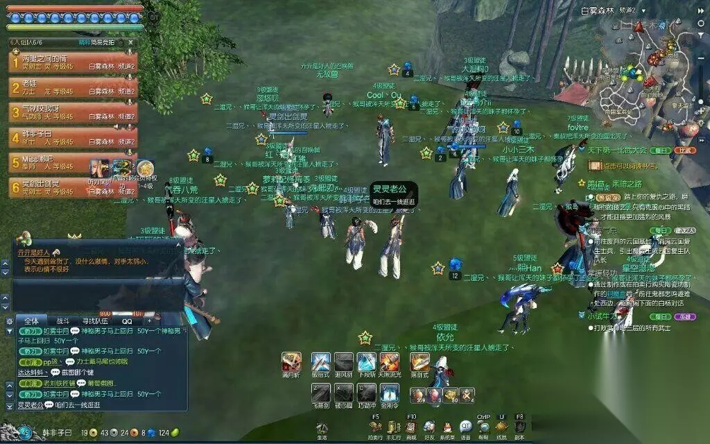 在这是个游戏里面认识了·一个ID叫 ‘’两腿之内的情‘’ ,他就是剑灵九区乾坤一掷,二湿兄工会的会长,当时我在做“武林盟”的灵石任务,被一群敌对盟“浑天教”追杀·我们会长看见我惨兮兮的样子,直接把我拉进工会,带我去“报仇”了。 这是笔者第一次在一个游戏里面找到存在感,也是认识了一群可爱的朋友啊。