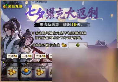 Part.2 七夕3K累充活动限时开启 活动时间: 2023.08.22 10:00 - 2023.09.03 23:00 全新七夕3K累充活动来啦!累充元宝,即可获得海量福利,更有全新时装【鱼戏莲】获取!感兴趣的少侠可以在游戏中点击活动页面查看具体内容。