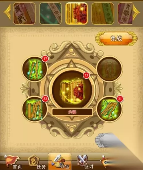 【一】 碎片来源:势力内政、任务、副本、夺宝。除夺宝外,其他来源都是随机的,只有夺宝可以选择抢哪个碎片。 【二】 夺宝前的准备:先把内政和副本做一遍,一般都会获得几个碎片。这样,夺宝时,有了的碎片就可以先不打了。 【三】 从缺少碎片个数最少的开始合成1本书,我们尽量先抢缺的最少的那种书的碎片。例如先打缺1个碎片的宝物,打到这个就可以马上合成了。(如图示) 【四】 根据阶段判断热门夺宝:每个级别段,都有某种热门书,还有稀少碎片。非R一定要注意避开抢热门书和稀少碎片。那么,哪些是热门和稀少的呢?常见的热门书包括孟德3,兵书2,春秋4,史记1,六韬2,孙子2、3,青囊4,玉玺4,尤其是六韬2,后期急需。然后就是强化书不要单单强化一本,可以同时几本一起强化,这样性价比比较高。 【五】 100级以下时不用选择对象。一般情况下,100级以上时打书最好选择比自己高20+以上的对象。不过,低20级抢一次,高40级抢5、6次才得到的事业经常碰到。 【六】 身上常备几块免战牌,一合成书就马上开免战,或者抢到热门碎片合成赶紧免战。 【七】 注意合成免战时间,1小时后赶紧收书。用你手机的“闹钟”功能,把时间订好,声音不要静音,这样书就可以收到了。 【八】 计划好最佳时段,早上5到6点多,是抢书的最好时段,因为很多人不在线,即使不开免战,一小时后书还在。 看来以上八点夺宝技巧,是不是脑海中已经密谋着夺宝大计了呢?《三国来了》6月约定你!