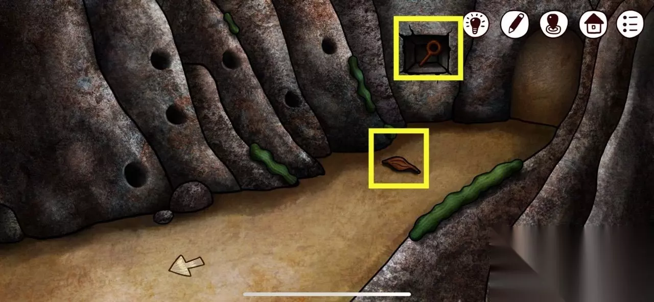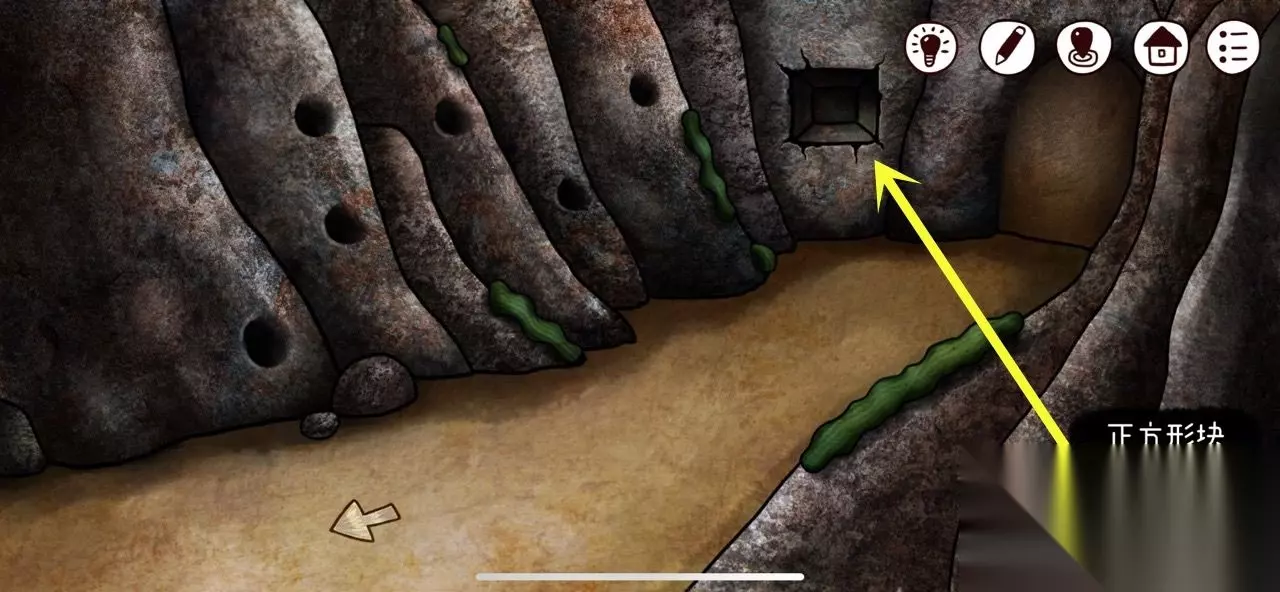 继续往里走,把【石头】扔进左起第四个洞中,掉落【种子】,墙壁上获得【开关调节器】