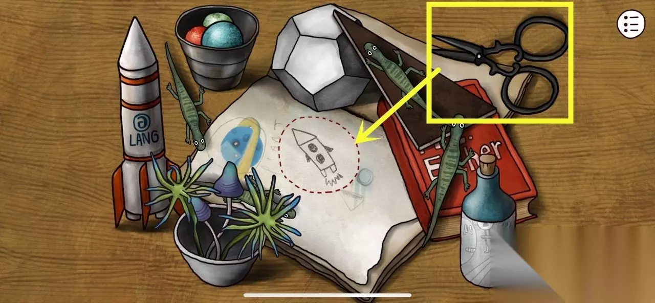 迷失岛3一周目通关流程攻略,迷失岛3一周目怎么通关?复古魔性的2D手绘画面,丰富烧脑的益智谜题,脑洞大开的神秘剧情,设置二周目玩法,下面给大家带来迷失岛3一周目图文通关流程攻略,希望能帮助大家。 迷失岛3宇宙的尘埃一周目流程攻略详解1 首先捡起桌上的【剪刀】,把红色虚线圆圈剪下来,正式开始游戏。