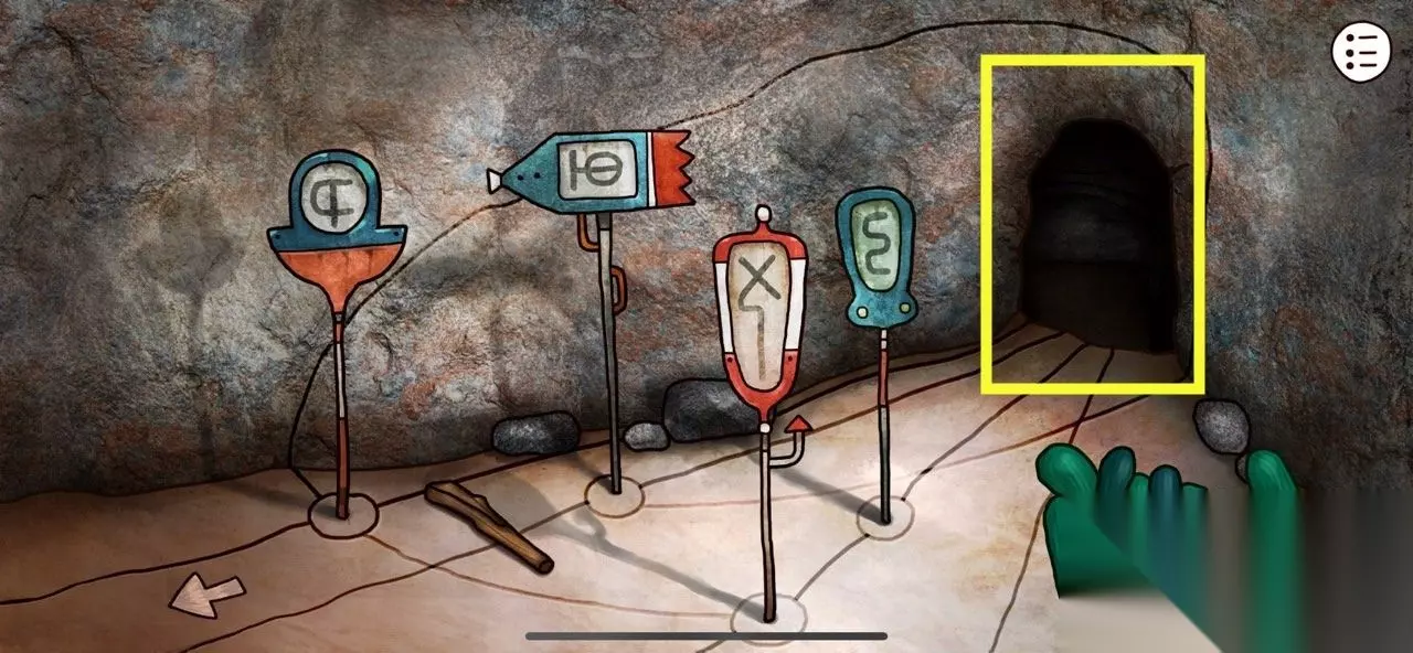继续向上走,再根据壁画密码【θ (—) 屮 X】打开机关。