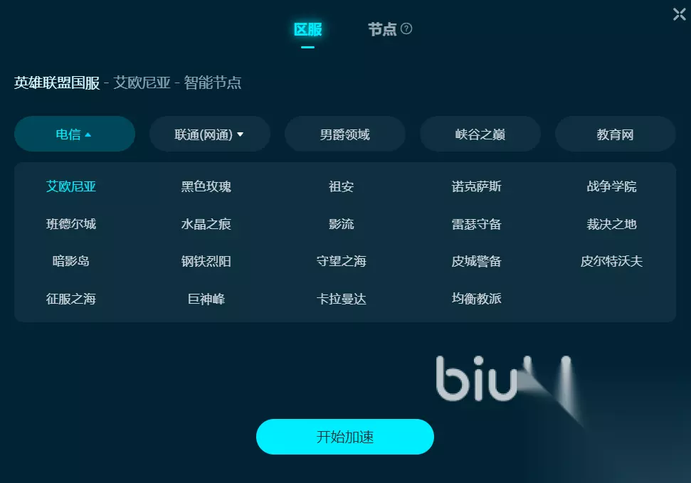 在操作流程方面,小编来为大家简单介绍一下。首先,完成biubiu的客户端下载和安装后,打开应用,直接在搜索框输入游戏名称,无论是输入“LOL”还是“英雄联盟”,你都能看到众多相关选项。接着,从中选择你要加速的项目,国服或国际服各大区都能找到,选择后点击进入加速页面。进入页面后,只需启动游戏客户端,biubiu会自动为你完成加速线路设置。