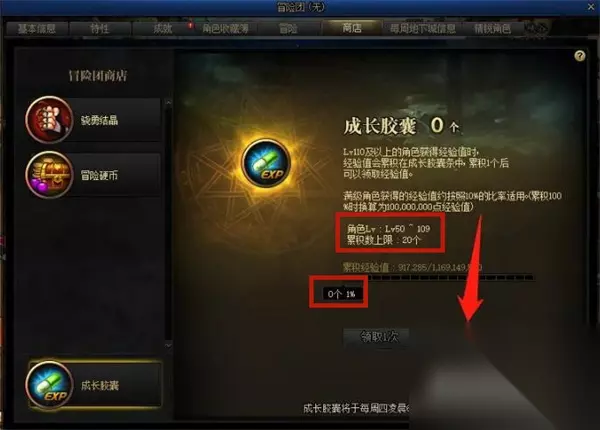 ②在冒险团中切换到“商店”选项,然后在左下角点击“成长胶囊”;