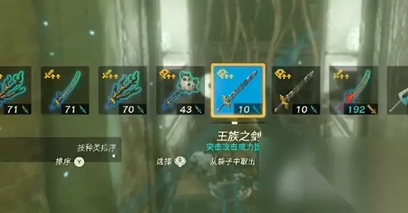 3、接着是取出武器,将王族之剑取出,用其他的利器都是可以的,因为这里是藤曼,只需要砍掉就行。
