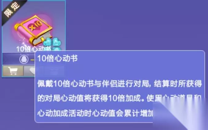 5、因为心动书虽然在稀有格子中,但是它还是普通道具,所以玩家点击购买盲盒时选择消耗10个沙漏的性价比最高,并且获得的道具是随机的。心动书的有效期天数可以累计,玩家可以按需求购买抽取天数。