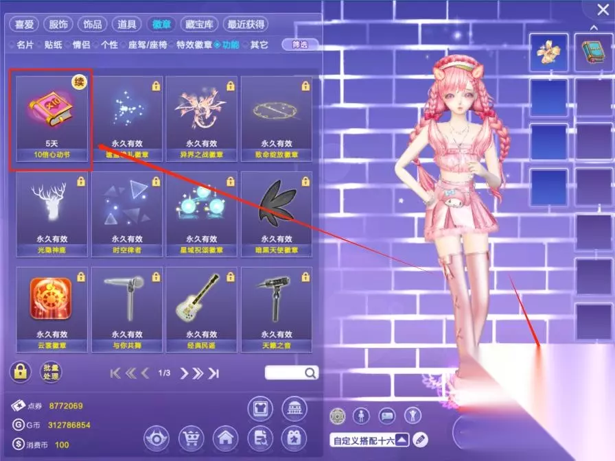 1、QQ炫舞中想要快速刷心动值可以佩戴【10倍心动书】徽章。