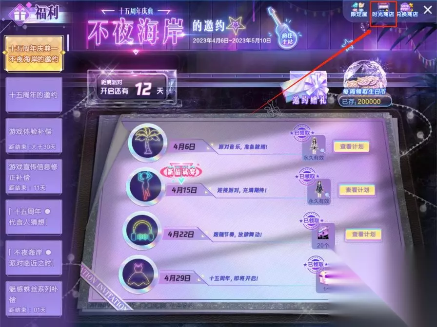 2、【10倍心动书】徽章玩家可以通过在时光商店中获取,玩家在首页进入福利界面。