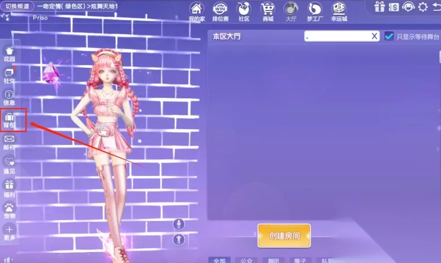 6、获得徽章道具后玩家点击背包。