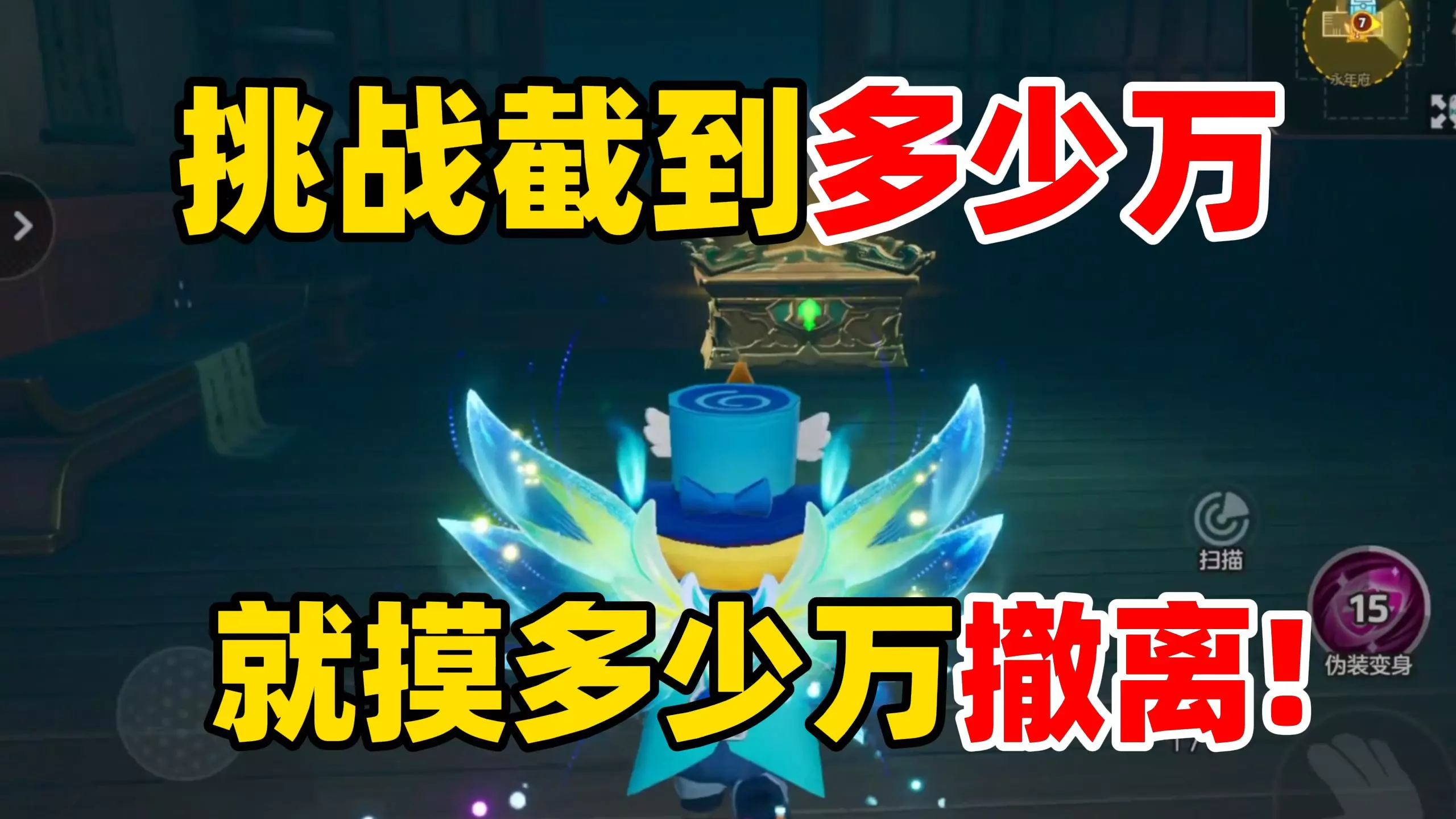 这是元梦之星的玩法挑战内容,博主挑战截到什么就摸什么的玩法,第一箱开出九死还魂草,分享了该挑战玩法的实操对局过程,展示了摸箱、撤离等对局操作。
