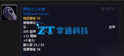 105 盔甲 +21 精神 +9 智力 耐久度 35 / 35 需要等级 54 野性之心手套获取方法详解: 游戏中一共有着两种方式:一种是通过击杀精英怪掉落(这个完全是看运气的!)同第二种就是通过任务【公平的补偿】任务奖励也是获取途径撒~。 PS:推荐玩家千万击杀掉落,因为任务有着更好的任务奖励选择。 【任务奖励】