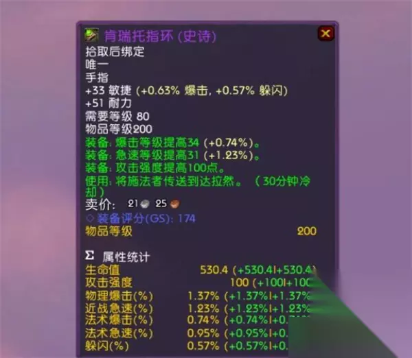二、是否值得购买? 1、替代快速传送功能 肯瑞托戒指附带传送达拉然功能,但该优势并非不可替代: 术士门可召唤 工程学传送器 法师传送门/组队飞行点 若你不是依赖频繁独行、并且已有便捷传送手段,该功能价值大打折扣 2、属性表现平庸,非毕业级别 戒指属性相较于副本掉落/声望兑换装备,并无碾压优势 不作为PVE或PVP毕业装,没有核心数值吸引力