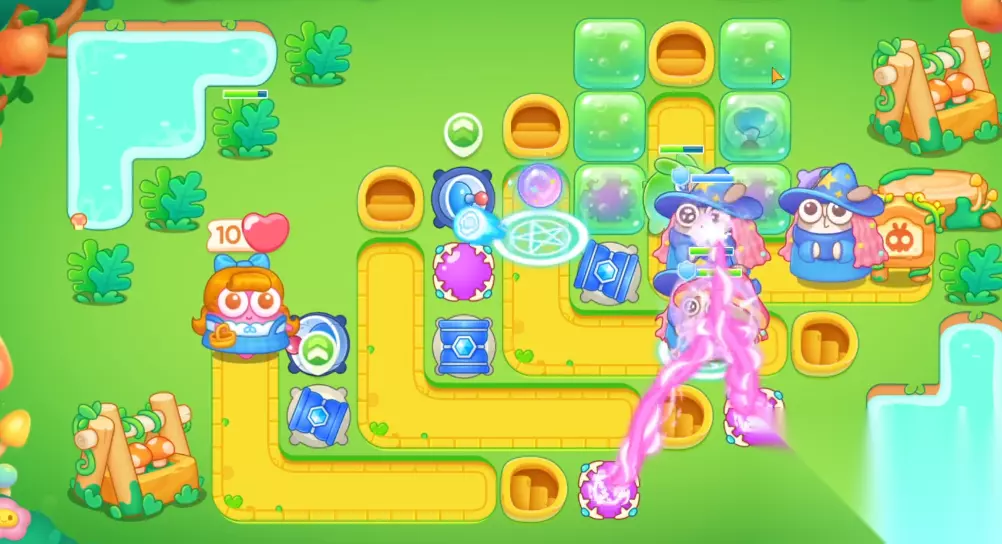 毒针只适合在出怪口旁边放上一个,雷达塔可以放在终点附近以便给靠近的怪物补伤害。在清理道具时优先三个钱袋,它们能够让玩家瞬间得到大量的金币,而它们所在的位置也很关键。在果冻兔被击杀后会给周围的炮塔添加果冻,果冻出现后要及时清理以解救炮塔,同时也能得到三个金币。