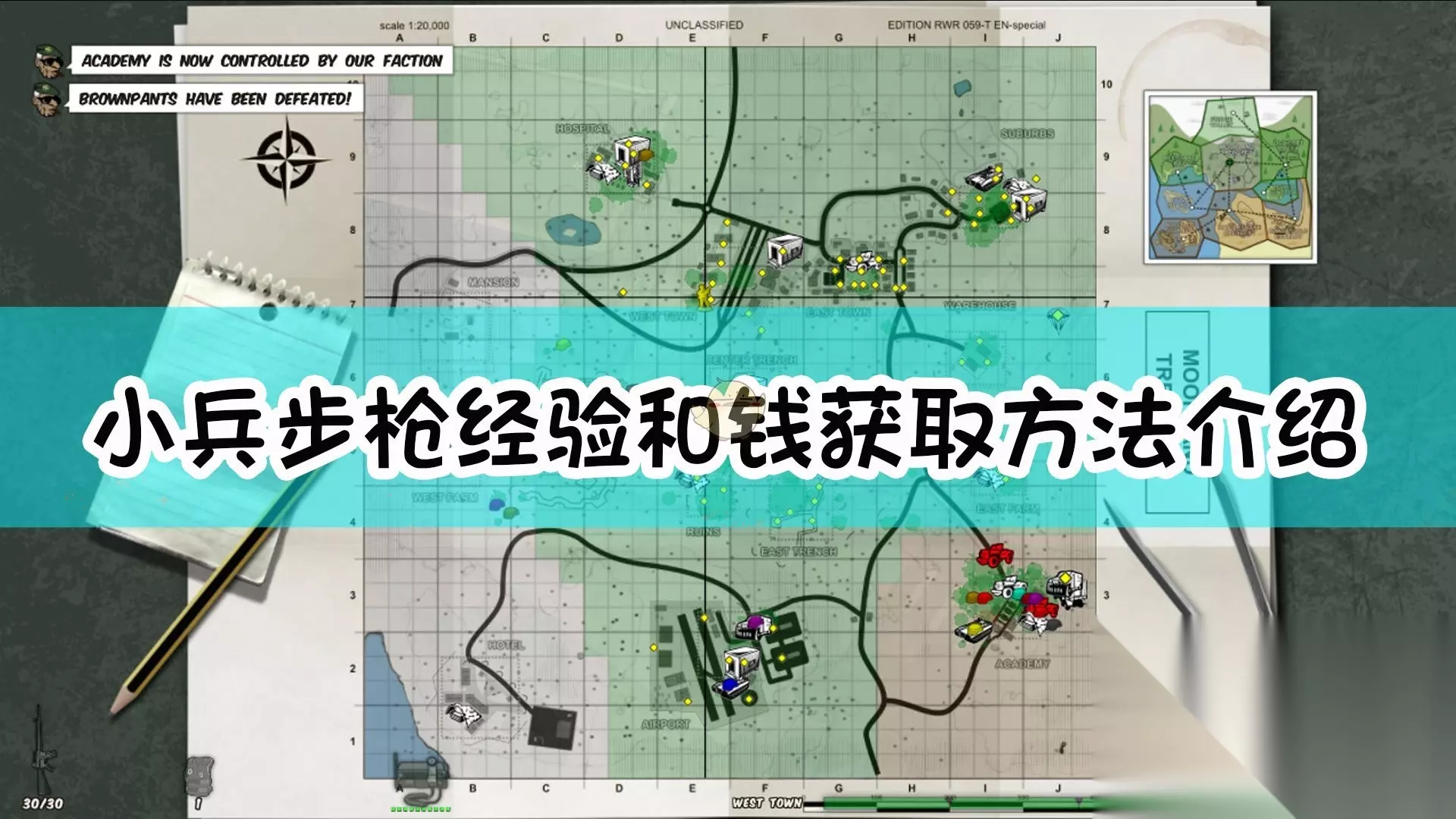 我方人数包括AI在此地超过三分之二则可占点。占领后获得高额回报。 此外:地图上有虚的框线,在线内就是判定点内,可以在进攻时参考用。侦查带放大镜的点也有奖励,方法是鼠标挪过去。