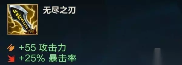 第二件,我选择做出无尽,这样的话前期的易大师就会质地飞跃。无尽有攻击力和暴击率加成,而且可以让暴击伤害由200%变成230%,这样可以打出高额输出,出完电刀无尽后,暴击率已经去到50%了,所以暴击的概率会很高,前期击败见谁杀谁了。