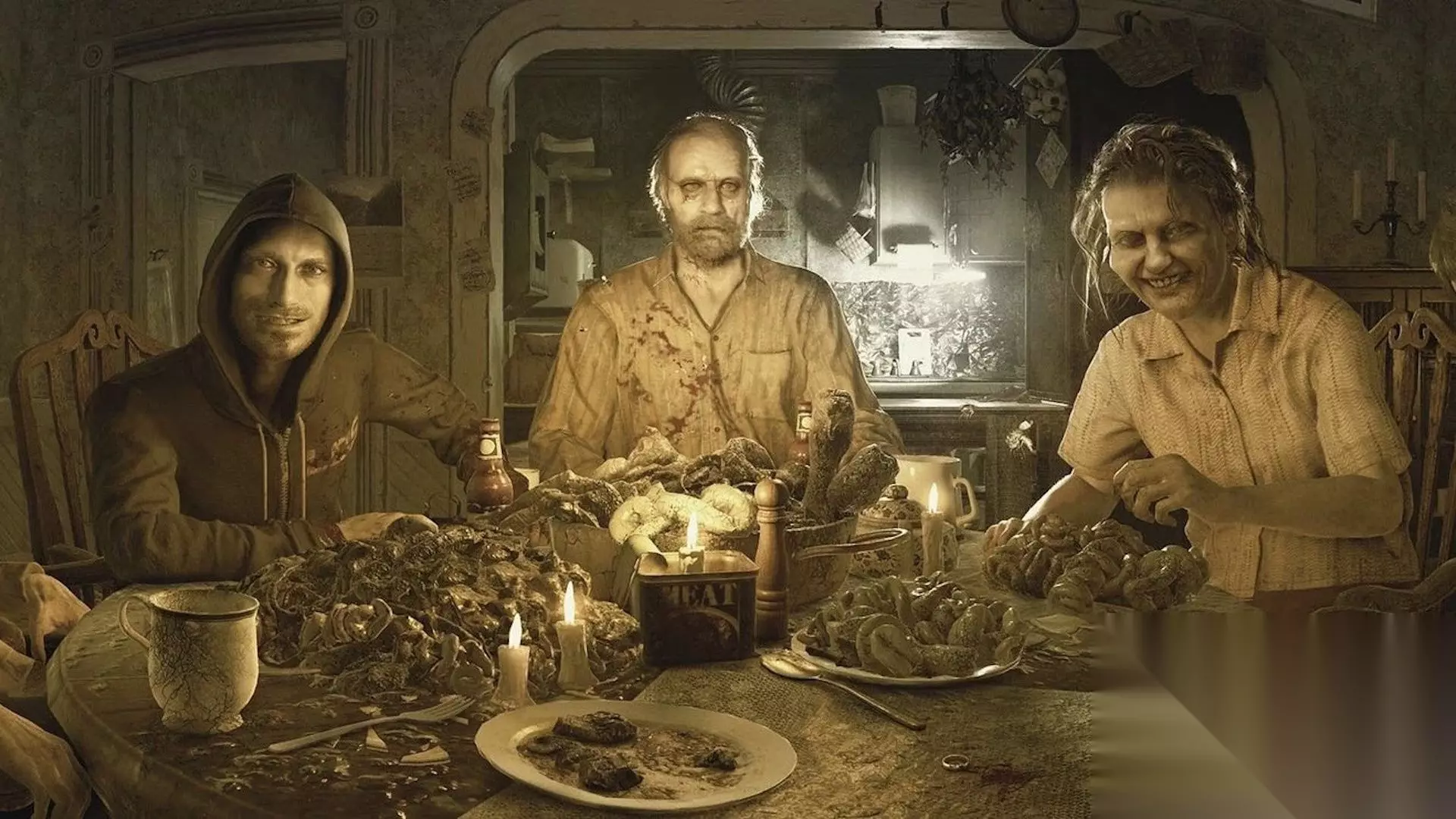 我指的是伊森·温特斯之死。 死亡在《生化危机》中并不是什么大不了的事。丧尸像啃潜艇三明治一样啃噬克里斯·雷德菲尔德的喉咙,而这个大块头几秒钟后就会在安全屋里再次出现,他那粗壮的脖子完好如初,整个人神采奕奕。某个头套麻袋、手持电锯的噩梦把里昂·肯尼迪的脑袋当成排球,但没关系。他好得很!大概是背包里备了个假头和一些强力胶,或者……之类的。 在这些游戏中,死亡是紧张且惨烈的。它是你需要极力避免的事情,这样你才不用看到可怕的事情发生在好人身上,也不必在到达下一个存档点之前重玩令人恼火的一两个章节。但当死亡发生时,留在你脑海中的是视觉上的冲击,而不是那个人真正死去的概念。当绿色药草能治愈断裂的动脉,而“英雄光环”能让主角免受高传染性丧尸病毒的侵害(尽管被咬了多次)时,死亡还能有什么意义呢? 这使得《生化危机:村庄》以及延伸出来的《生化危机7》,在卡普空的恐怖系列中显得独树一帜,甚至有些激进。伊森·温特斯死了。真的。兄弟彻底凉了。你在《村庄》的结尾得知了这一切,当伊森面对米兰达母亲时,他发现让他能用“洗手液”把断手粘回去的并不是什么游戏逻辑。那是她的霉菌,是遍布贝克家宅邸的物质,也是那个诡异的小屁孩伊芙琳的组成物质。