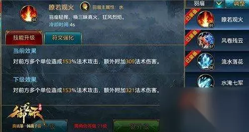 御龙在天手游羽扇职业技能详细介绍一览。今天小编为大家呈上的是传说中的“奶妈”职业--羽扇的技能解析。 羽扇主属性为水,法系职业。与端游不同的是扇子在《御龙在天手游》中更多的是攻击,并非我们传统意义上的增加状态的“奶妈”。所以,在《御龙在天手游》中,羽扇也作为主要攻击职业被大多数人选择。那么让我们来看下羽扇的具体技能。 瞭若观火:群攻技能,冷却时间4秒,对前方多个单位造成一定的法术攻击,额外附加法术伤害,随着技能等级的提升,额外伤害也会随之增加。