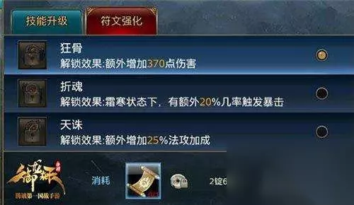 天外飞仙: 对前方多个单位造成极高的法术攻击额外附加伤害,不难看出此项为纯攻击类大招,可以对敌人造成致命的伤害,但是冷却时间也是最长的。建议在操作允许的情况下可以提前带好技能在使用之后迅速更换技能,与法不容情切换减少技能冷却时间,即在有限的时间内可以打出更高的伤害。 此外,学习符文技能可以获得狂骨、折魂、天诛三种符文效果,可额外增加伤害,打出更高的法攻,并且会增加暴击几率。