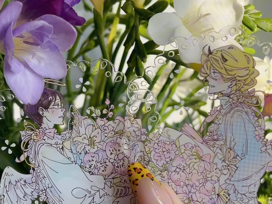 主体是桃饱定制的立牌+杯垫,中间粘了个pdd买的轴承 忘了亚克力有自重的问题所以两边高低不平,只能贴成偏心圆了。。。