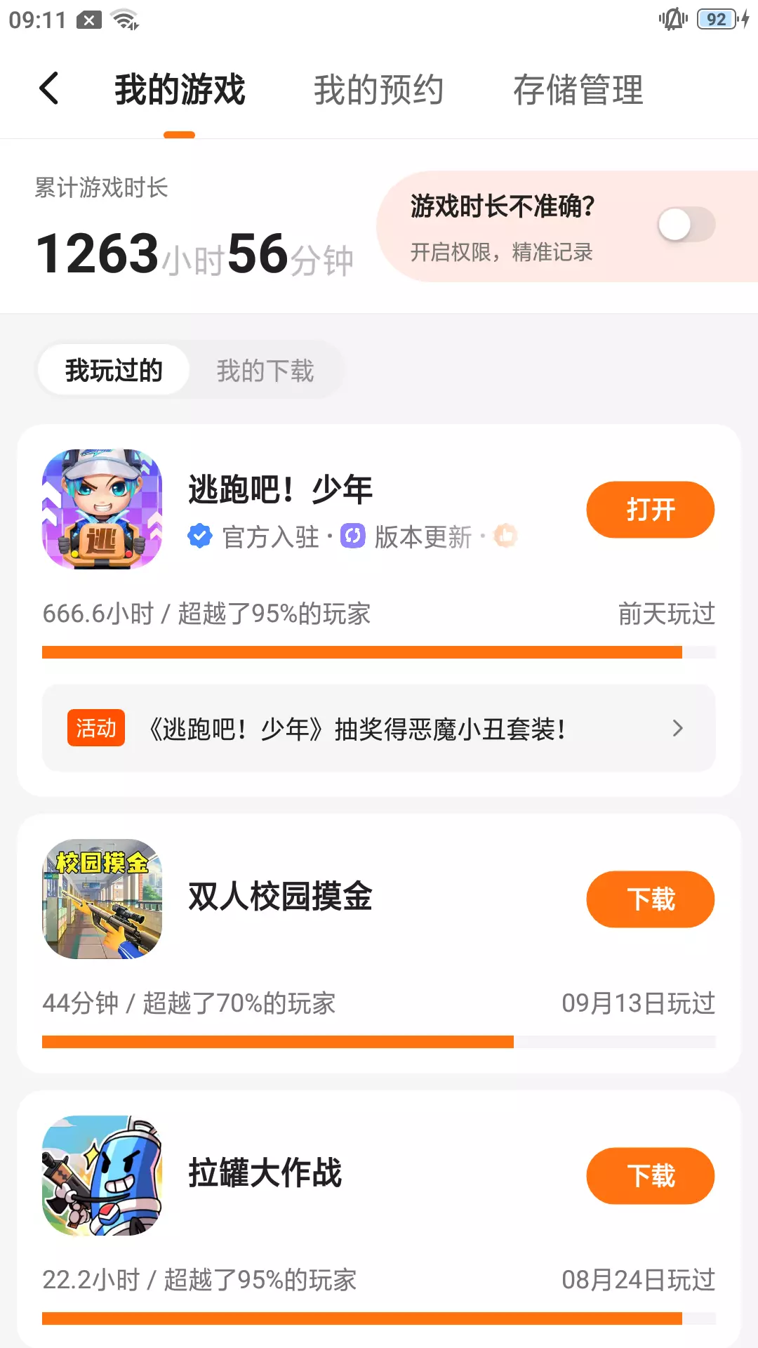 逃少已经玩儿666.6小时了