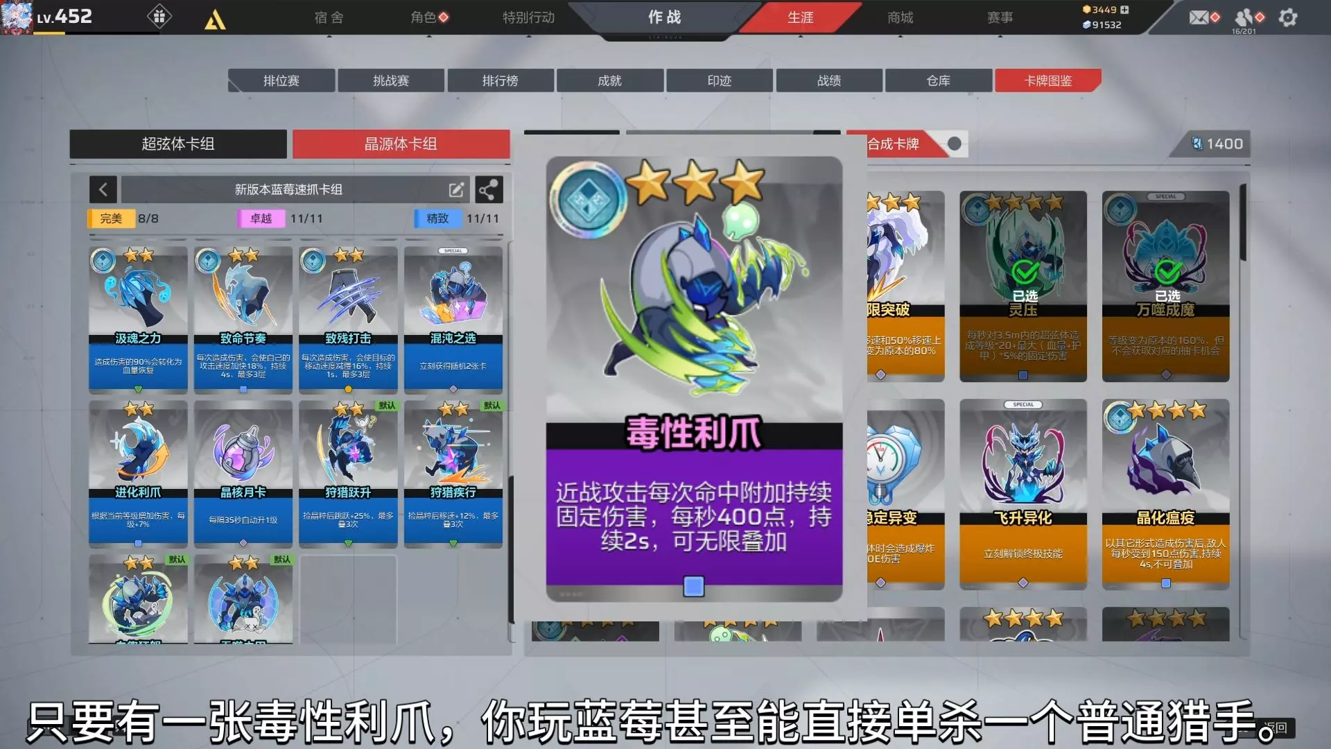 关键卡就一张,毒性利爪,你有这张卡直接猛猛开抓就行了,没出也没关系,攻击力硬灌伤害就行,玩蓝莓开个大招不被秒就是无敌。卡组都可调整,反正重要卡就毒爪,肉体革命,…