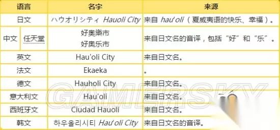 点击查看大图 细节 巧合的是,好奥乐市的名称不论日文还是英文,皆包含了哈乌的名字。 名字来源