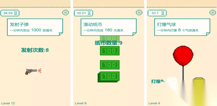 很多人想要通过游戏来放松自己,这时候就可以尝试1分钟手速挑战,里面会设定大量的关卡,每一关都会以1分钟为时间限制,需要在1分钟的时间内尽可能多的发射子弹,或者通过点击的方式关闭场景上出现的电脑弹窗,另外还可以在游戏里不断给气球打气,这些游戏的操作都比较简单,终极目的都是为了让玩家能通过游戏释放自己的压力,赶快在这1分钟之内让自己完成更多项不同的挑战吧。 高速下载 普通下载 优先233乐园APP下载 3、《逆境重生》