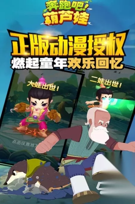 将酷跑游戏和葫芦娃的结合,在这款《奔跑吧葫芦娃》的游戏里,玩家将要操纵着灵活的手指去让葫芦娃躲避障碍。每一关的通过都将会得到相应的奖励,奖励可以去提升葫芦娃的速度和技能时间,越强大的葫芦娃,越能够得到胜利。得到的金币可以帮助爷爷去打造自己的小家,要给葫芦藤浇水,施肥,等到时机成熟,玩家将会看到其他葫芦娃的成熟,得到新的角色。每一个葫芦娃的神通不一样·,对应的技能也就不一样。 高速下载 普通下载 优先233乐园APP下载 3、《葫芦娃大作战》