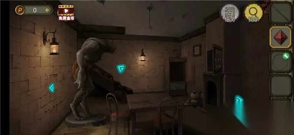 46.用“小铲子”去除“石盒”的霉菌 47.将“电池”放入“石盒”,完成小游戏,获得“鱼形金属块”,迅速记下出现的图案,然后按顺序点击 48.将“鱼形金属块”放入墙上凹槽,完成小游戏 49.拾取地上的“金属片” 50.将2个“金属片”放入栅栏的挂锁凹槽,拾取“纸条”和“龟壳” 51.根据墙上的英文字母,打开柜子,获得“龟壳”,密码YTRU 52.将3个“龟壳”放入墙上的大龟壳,然后调整龟壳 53.用“石镐”砸开墙壁,获得“魔核” 54.将“魔核”放入怪物的嘴里,怪物炸开后,拾取掉落的“小帆船” 55.根据“纸条”的提示,完成墙上的小游戏,获得“小帆船” 56.将2个“小帆船”放入箱子凹槽,获得“钥匙” 57.用“钥匙”打开三楼的栅栏门 58.拾取地上的“五角星” 59.完成箱子的一笔画小游戏,获得“吸铁石” 60.在桌上拾取“镊子“,在雕像旁的蜡烛拾取“把手” 61.查看墙壁上的图案62.在杂物堆拾取“染色剂”和“圆环”,在金属切割器旁边拾取“油瓶” 63.完成柜子的音乐小游戏,获得“开瓶器” 64.对“油瓶”使用“开瓶器”,将油瓶里的塞子拔出来,每次调整完开瓶器的双臂后,按一下开瓶器