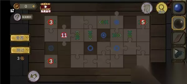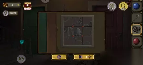 31.上三楼,拾取栅栏门上的“火把” 32.返回一楼,打开棺材旁边的地下室入口,调整4个角 33.进入地下室,拾取“绳子”和“木棍” 34.点击墙上的挂画,拾取“银片” 35.组合物品“钩爪”和“绳子” 36.对洞口使用“钩爪”,进入二楼储藏室 37.拾取“龟壳”和“圆珠” 38.完成箱子上的拼图游戏,获得“生长剂”,点击右边的圆按钮,可以翻转拼图 39.根据地下室的箱子提示,打开右边的柜子,获得“金属片”,密码7264,箱子的线索减去柜子上的线索 40.对植物使用“生长剂”,顺着植物爬到楼上,注意植物底部的提示 41.拾取地上的“钥匙”和“长木棍” 42.将“金属片”放入柜子凹槽,获得“小铲子”和“小金属片” 43.将“圆珠”放入地上的箱子,完成孔明棋小游戏,获得“石镐头” 孔明棋规则:将棋子跳过邻近的棋子,被跳过的棋子则从棋盘上取开。跳的路径可以上、下、左、右,但不可对角跳,直到剩下最后的一颗棋子 44.组合物品“石镐头”和“圆木棍”,获得“石镐” 45.用“钥匙”打开柜子,获得“石盒”