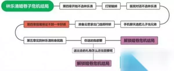 四、暗巷危机 1、第四章开始不选择林乐清。 2、打架输掉,然后医院对话中不选林乐清。 3、收集聊天选择把儿子当兄弟。 4、准备云思家出门时选择郑梓妍。 5、玩家要确保第四章林乐清的好感度不足50%。 6、第五章见到林乐清转身就跑。 7、然后选择【你送的我都要-送出去的礼物怎么还往回要呢】就可以解锁暗巷危机结局了。 以上是小编为各位带来完蛋我被美女包围了林乐清全结局攻略的全部内容,更多精彩游戏资讯,请持续关注233乐园。