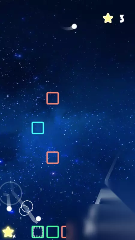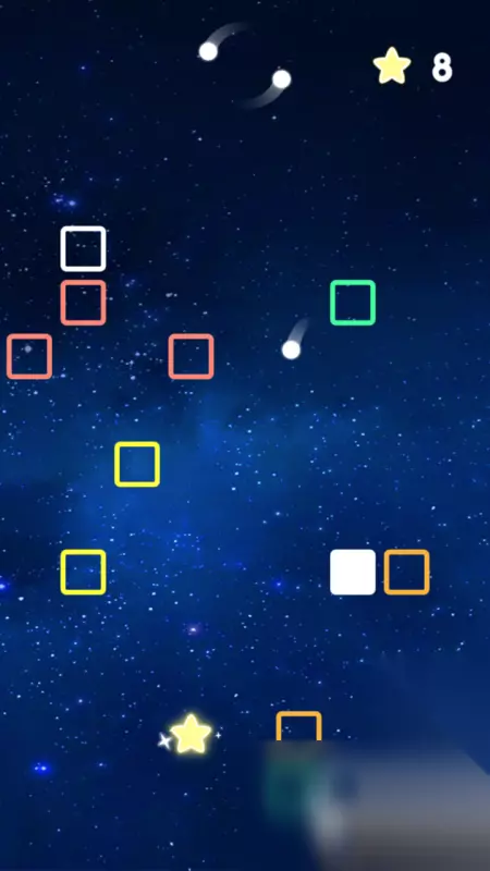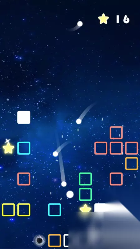 它的最大亮点主要还是易上手且耐玩,玩家只需要点击屏幕即可朝指定方向发射小球,而这期间唯一需要的操作就是提前确定好发射的位置,对于手残玩家来说也十分友好,只需要有一定预判即可。而且它在游戏开始时,会于顶端显示你所剩的小球数量和已经收集的星星数量,两者都能更好的帮你确定现在的目标完成情况。