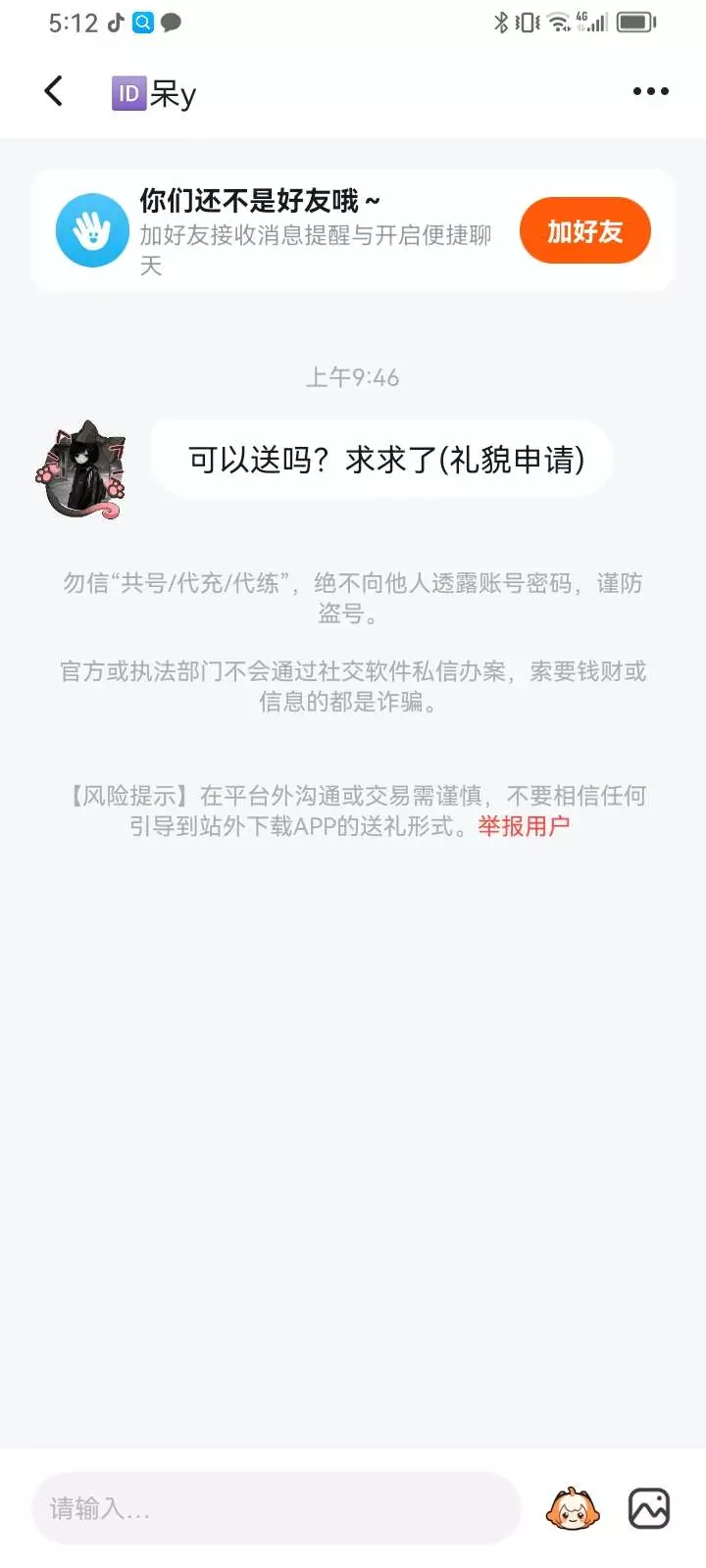 我只是想要一个朋友,而不是冲着我要礼物的人。虽然我是送礼物。但我只送熟的人开口找我要的我可不送。
