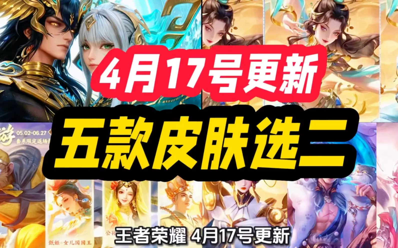 王者荣耀 4月17号更新!五大活动福利!大司命 FMVP 新皮肤 五月 挑战杯 预热上线!大禹伴生 公孙离星传说!五五开黑节 哪吒联动五款新皮肤 两款珍品传说 …