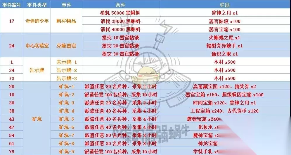 1、上图是神域的全地图和推荐走法,通过部分区域会触发事件和战斗。 2、开局优先走右侧,在右侧路线中可以获取一个虫洞提取装置,是后面建筑需要用到的。 3、虫洞提取装置需要一天进行研究,所以我们优先获取,加快进度。 4、采集事件触发可以用劳务派遣来对进度进行加速,但是采集事件时无法进行其他区域操作。 5、神域中部分事件相互关联,故不存在无法完成的问题 6、完成事件,神域完成度才会累积进度