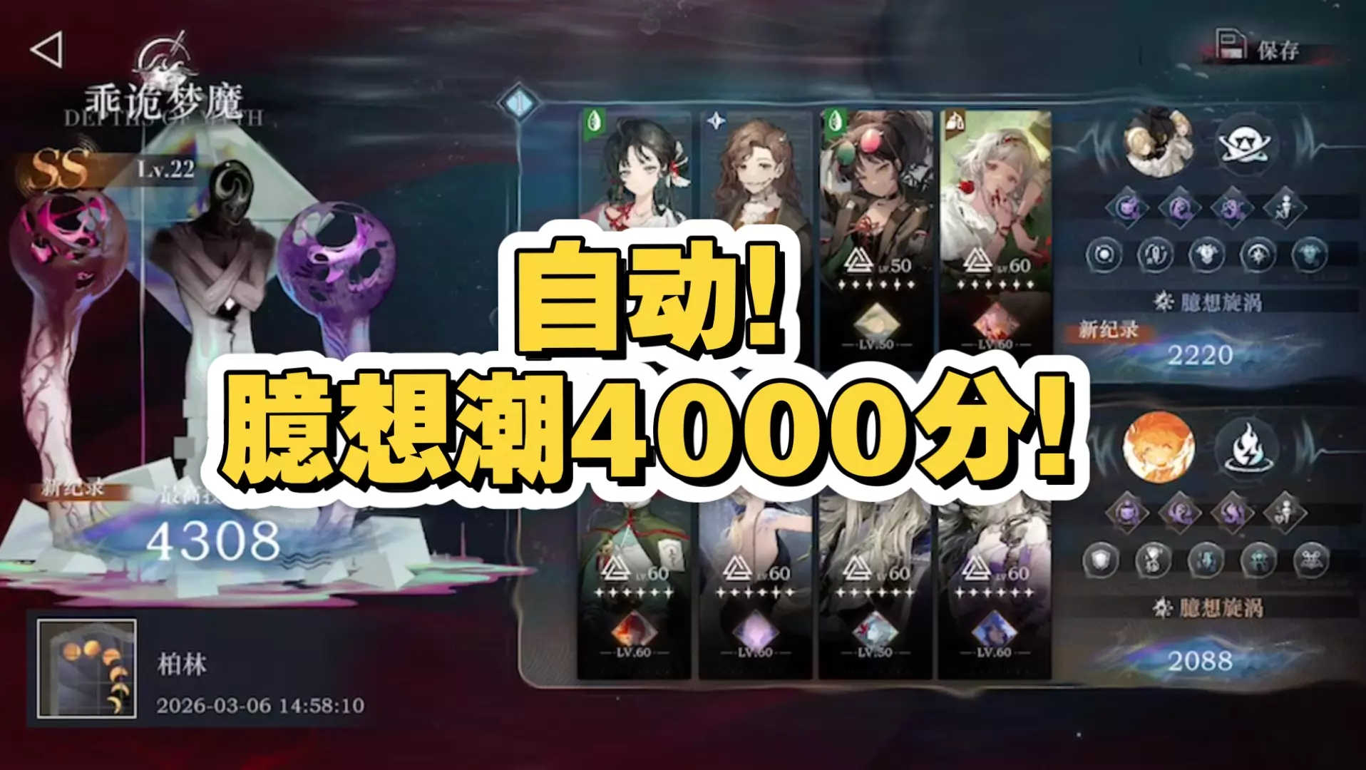 这是《重返未来1999》臆想潮玩法的全自动逃课攻略,可达成4000-4500分值,摆完即可挂机,还提到用兔毛换野树莓体验更好,分值差异和练度挂钩,攻略目前半完结。