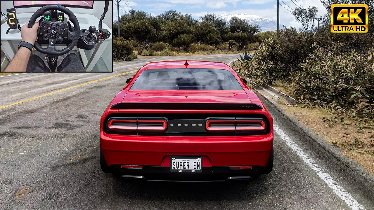 本视频展示了使用罗技G923方向盘和G换挡器,驾驶改装的道奇挑战者SRT Hellcat在《极限竞速:地平线5》中进行自由漫游驾驶的体验。
