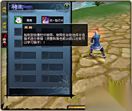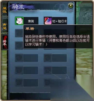2、完成初级骑术任务以后,就会自动获得初级骑术。 3、这时用鼠标打开人物属性界面中骑术栏,然后右键点击其中的灵兽头像,在经过一段吟唱时间之后,您就可以乘骑灵兽肆意闯天下了。