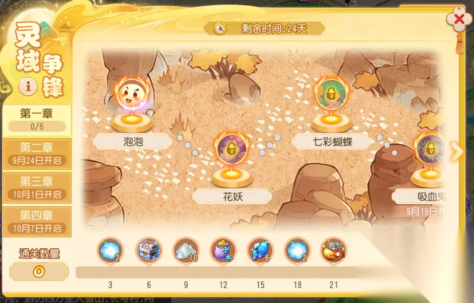 1. 单人闯关·灵域争锋 在灵域争锋中,少侠将和召唤灵们并肩作战,召唤灵会占据场地中的地块,进行合宠则会将地块进行组合并提升属性。完成关卡将获得星辰晶石·紫等丰厚奖励,欢迎各位少侠前来挑战。