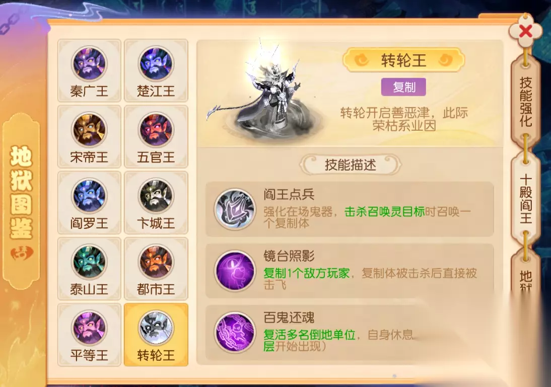 1. 全新挑战,十殿阎王 层层深入地狱之时,少侠们会迎战掌管每一层地狱的不同阎王,它们不仅会赋予鬼器特殊能力,还携带特色主动技能,了解它们的特征与弱点,掌握应对方法,才得以在地狱中生存。